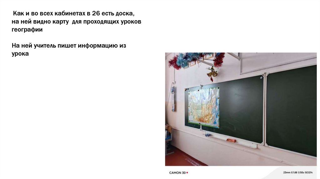 Как и во всех кабинетах в 26 есть доска,на ней видно карту для проходящих уроков