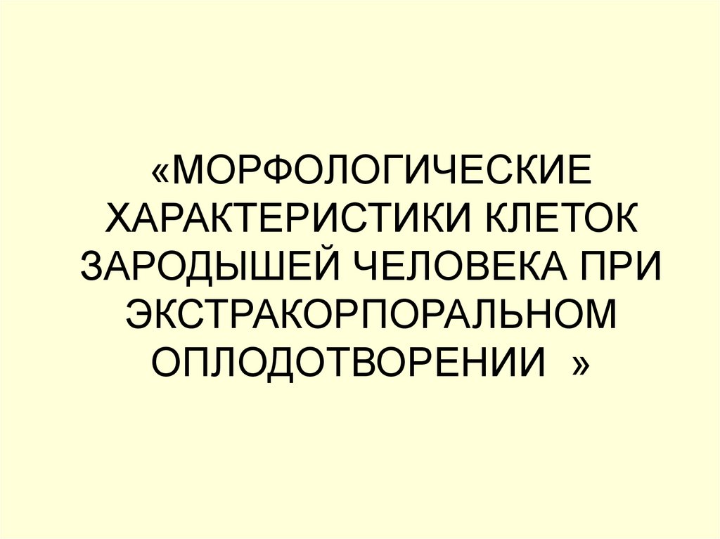 1. «МОРФОЛОГИЧЕСКИЕ ХАРАКТЕРИСТИКИ КЛЕТОК ЗАРОДЫШЕЙ ЧЕЛОВЕКА ПРИ ЭКСТРАКОРПОРАЛЬНОМ ОПЛОДОТВОРЕНИИ »