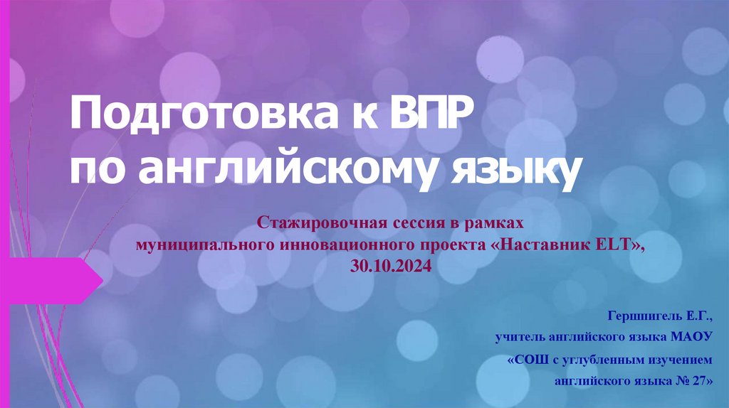 Подготовка к ВПР по английскому языку. Стажировочная сессия в рамках муниципального инновационного проекта «Наставник ELT»