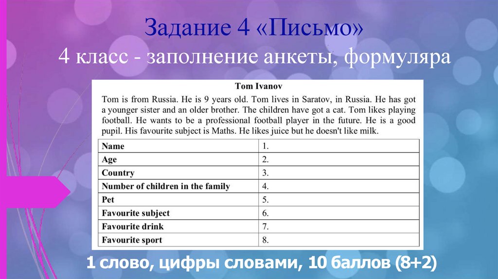Задание 4 «Письмо»4 класс - заполнение анкеты, формуляра