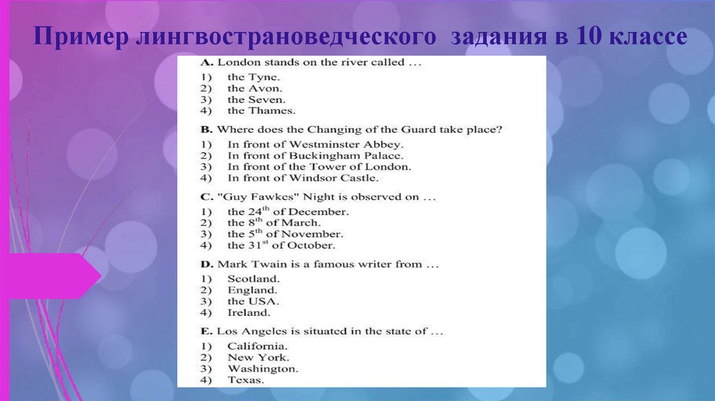 6. Подготовка к лингвострановедческому заданию в 10 классе