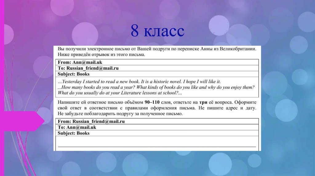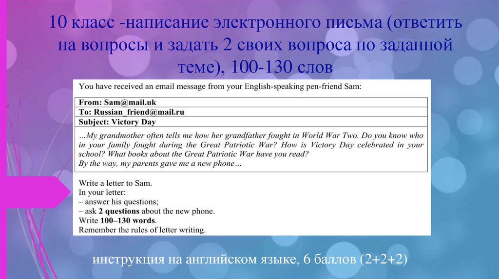 10 класс -написание электронного письма (ответитьна вопросы и задать 2 своих вопроса по заданной