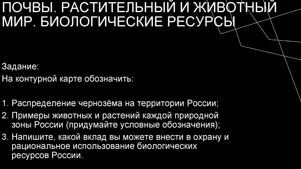 Почвы. Растительный и животный мир. Биологические ресурсы