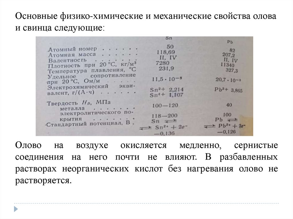 Основные физико-химические и механические свойства оловаи свинца следующие:
