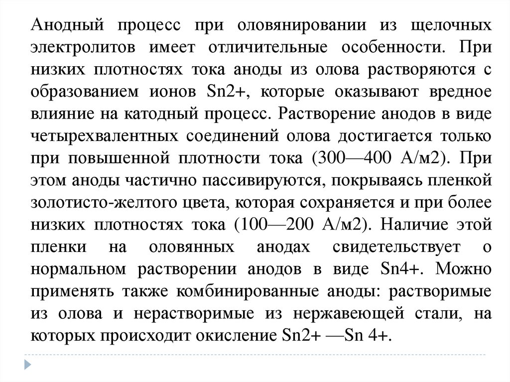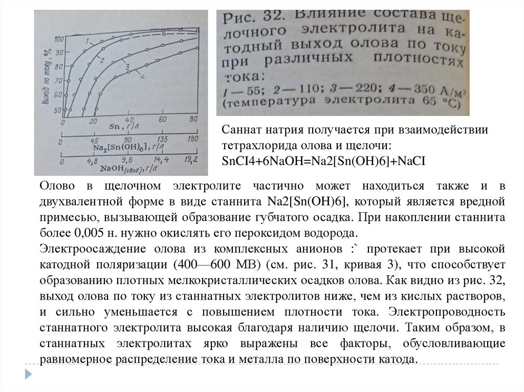 Электроосаждение олова из комплексных анионов :` протекает при высокой