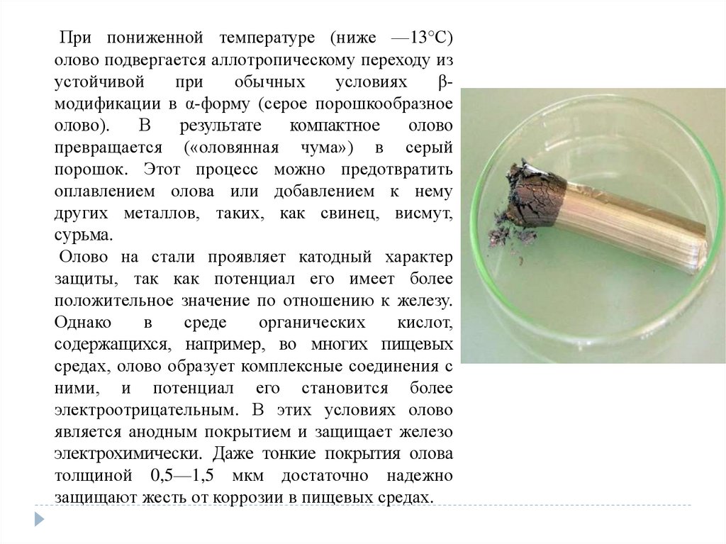 При пониженной температуре (ниже —13°С)олово подвергается аллотропическому переходу из