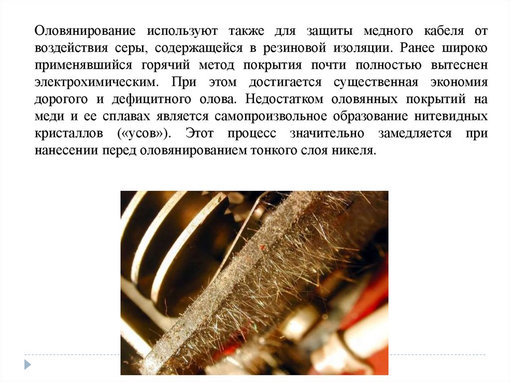 Оловянирование используют также для защиты медного кабеля отвоздействия серы, содержащейся в резиновой изоляции. Ранее широко