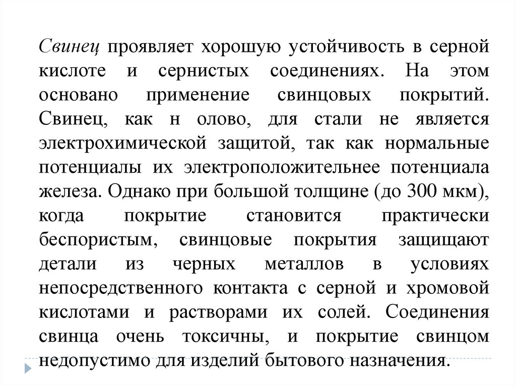 Свинец проявляет хорошую устойчивость в сернойкислоте и сернистых соединениях. На этом