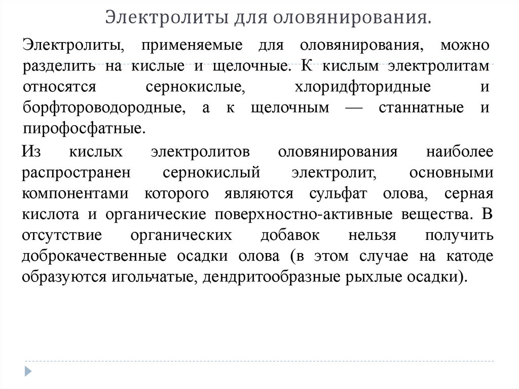 Электролиты для оловянирования.Электролиты, применяемые для оловянирования, можно