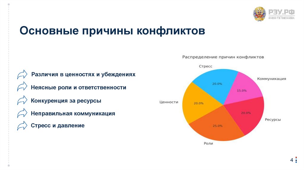 Основные причины конфликтовРазличия в ценностях и убеждениях