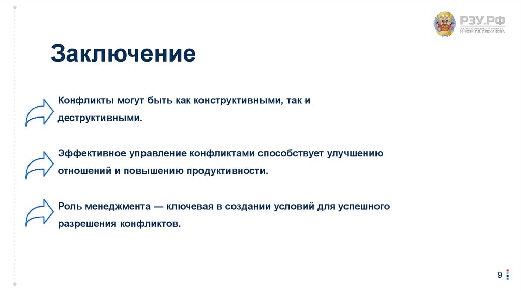 ЗаключениеКонфликты могут быть как конструктивными, так и