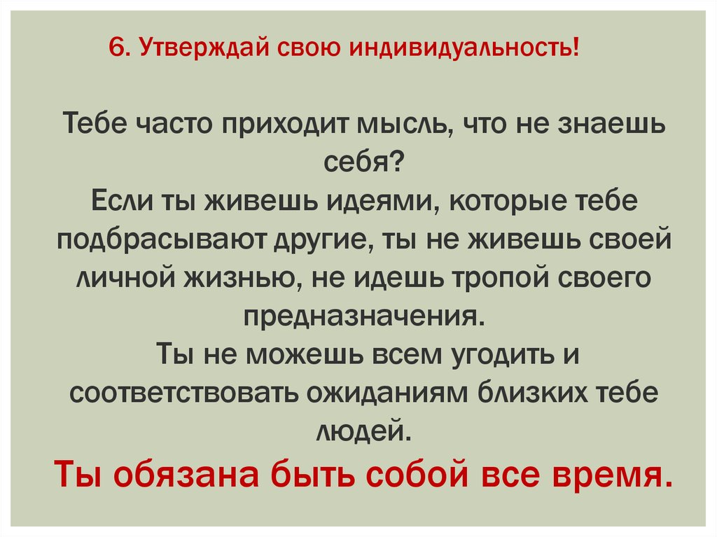 6. Утверждай свою индивидуальность!Тебе часто приходит мысль, что не знаешь
