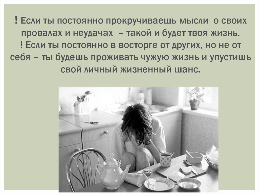 ! Если ты постоянно прокручиваешь мысли о своихпровалах и неудачах – такой и будет твоя жизнь.
