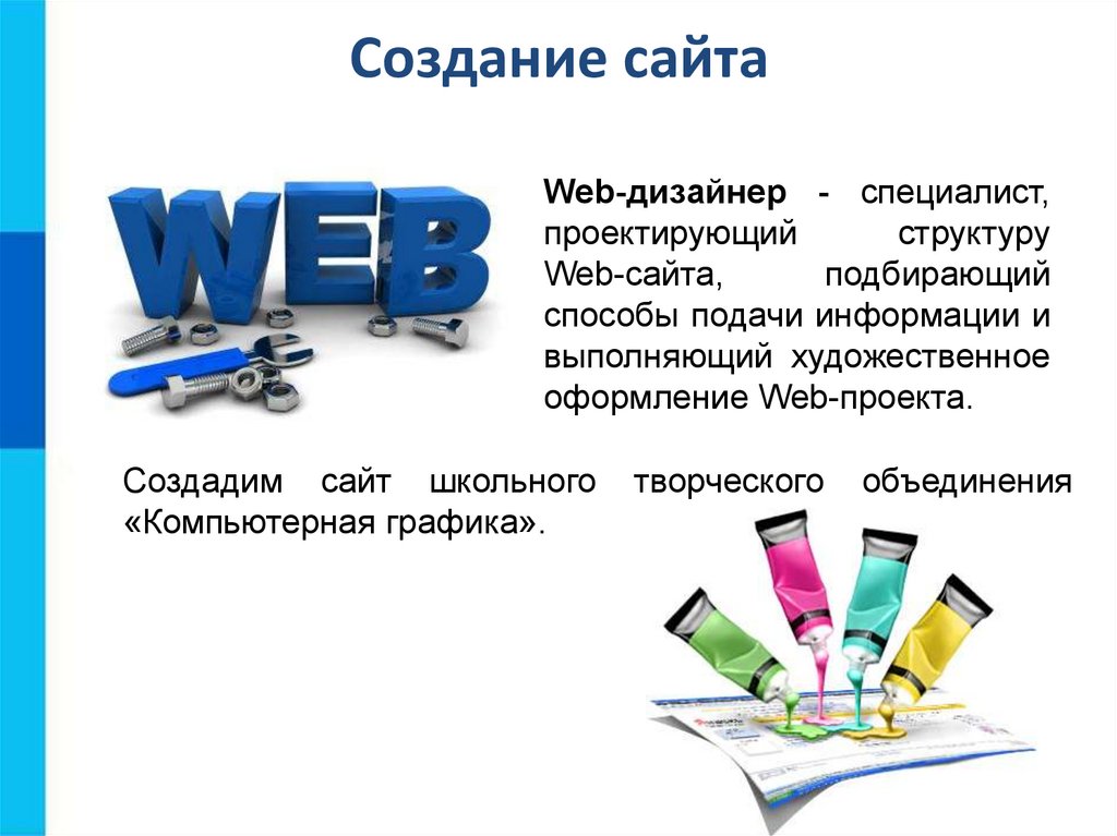 Создание сайтаWeb-дизайнер - специалист,