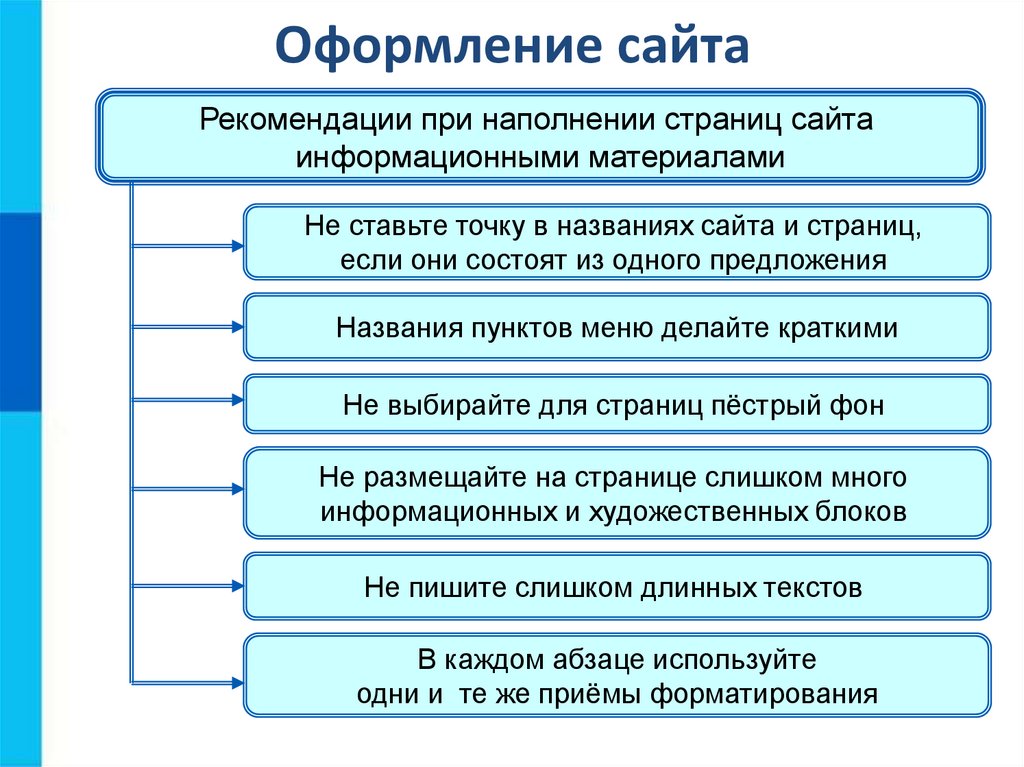 Оформление сайтаРекомендации при наполнении страниц сайта