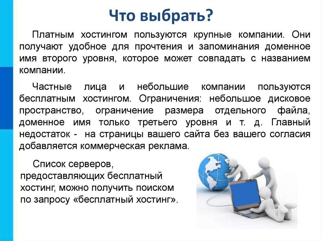 Что выбрать?Платным хостингом пользуются крупные компании. Они