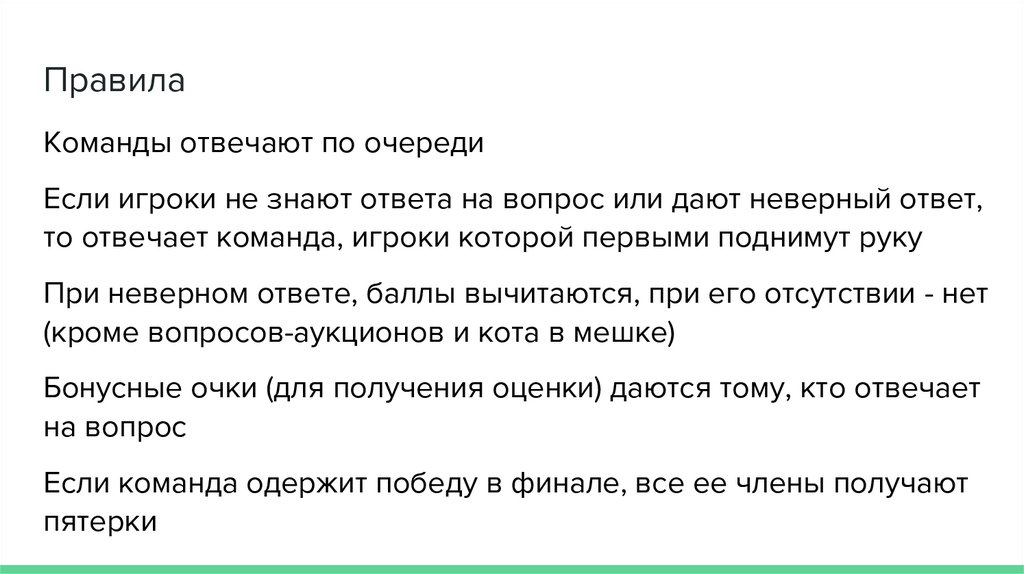 ПравилаКоманды отвечают по очереди