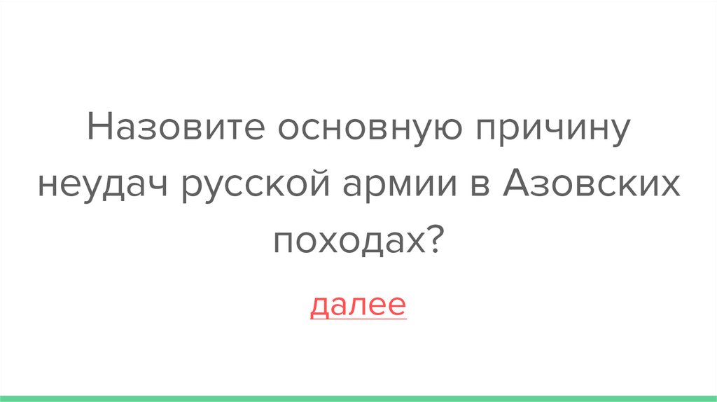 Назовите основную причинунеудач русской армии в Азовских
