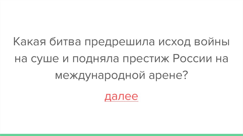 Какая битва предрешила исход войнына суше и подняла престиж России на