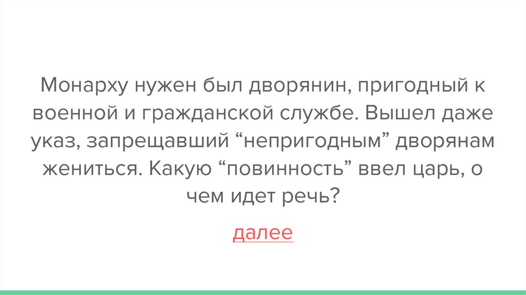 жениться. Какую “повинность” ввел царь, о