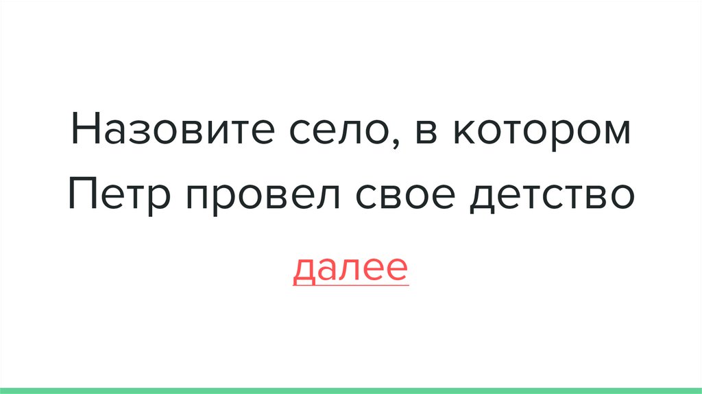 Назовите село, в которомПетр провел свое детство