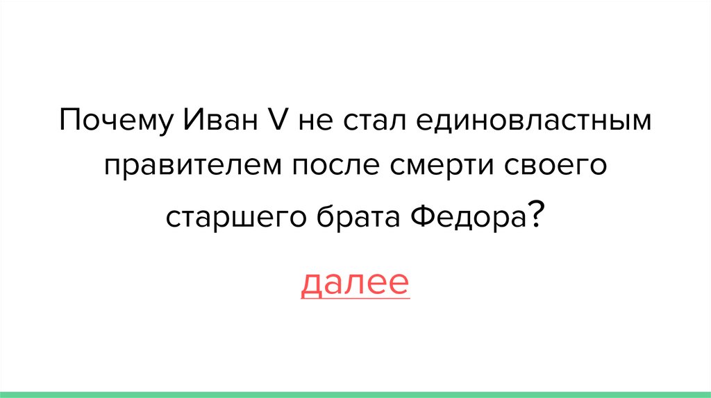 Почему Иван V не стал единовластнымправителем после смерти своего