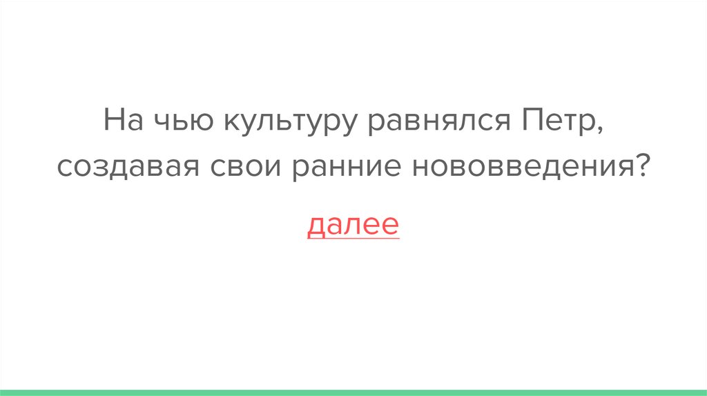 На чью культуру равнялся Петр,создавая свои ранние нововведения?