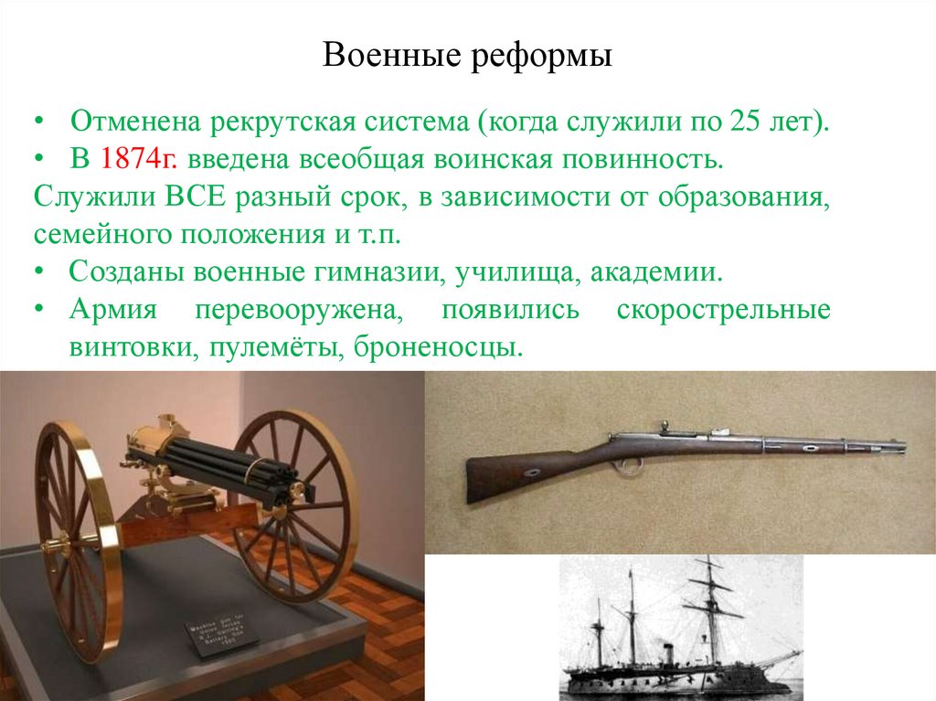 Военные реформы• Отменена рекрутская система (когда служили по 25 лет).