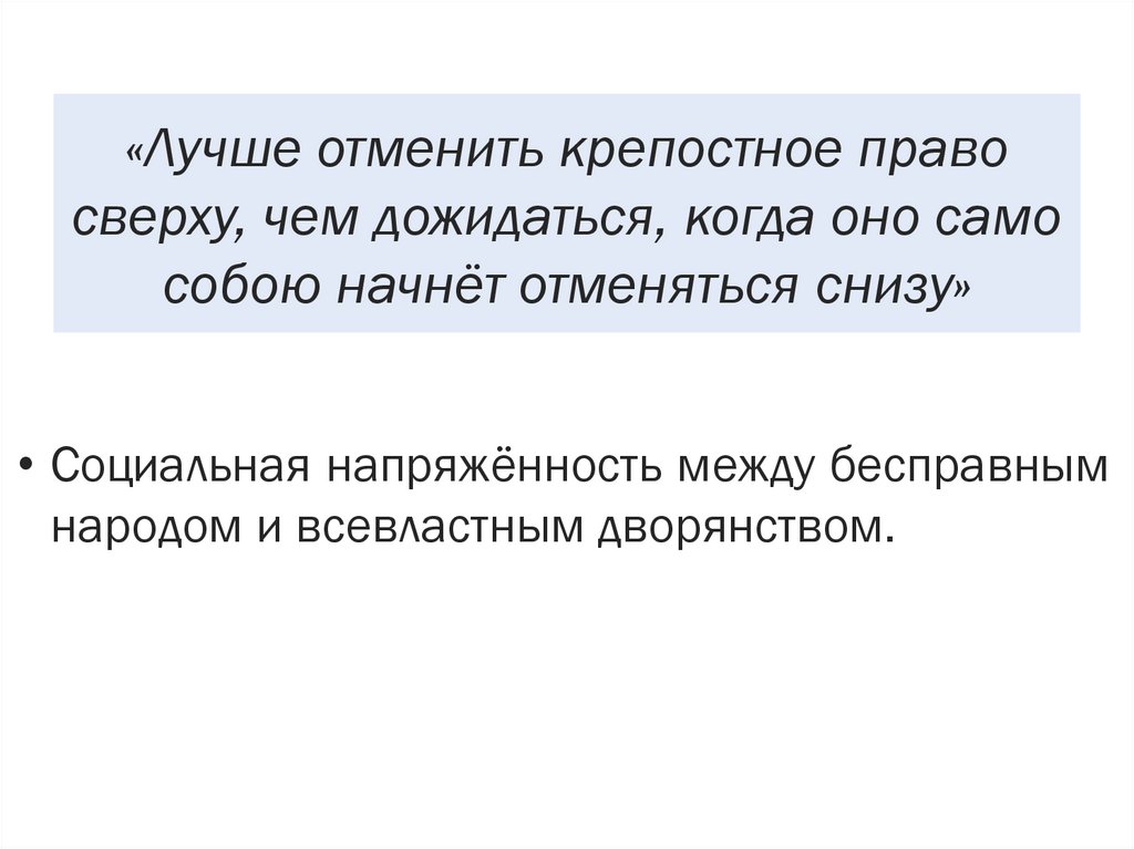 «Лучше отменить крепостное правосверху, чем дожидаться, когда оно само
