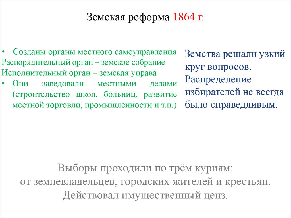 Земская реформа 1864 г.• Созданы органы местного самоуправления