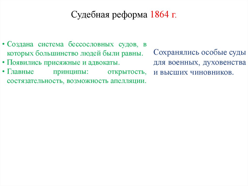 Судебная реформа 1864 г.• Создана система бессословных судов, в