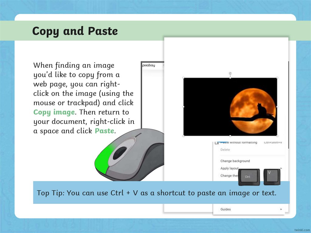 Top Tip: You can use Ctrl + V as a shortcut to paste an image or text.