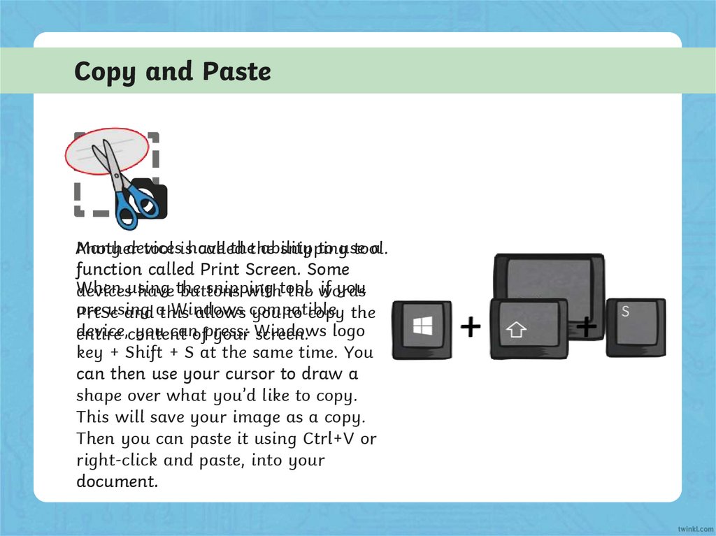 Copy and Pasting Checklist ActivityNow it’s your turn to open a blank document and practise copy