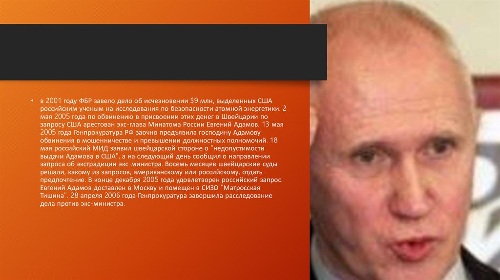 Евгений Адамов якобы способствовал незаконному