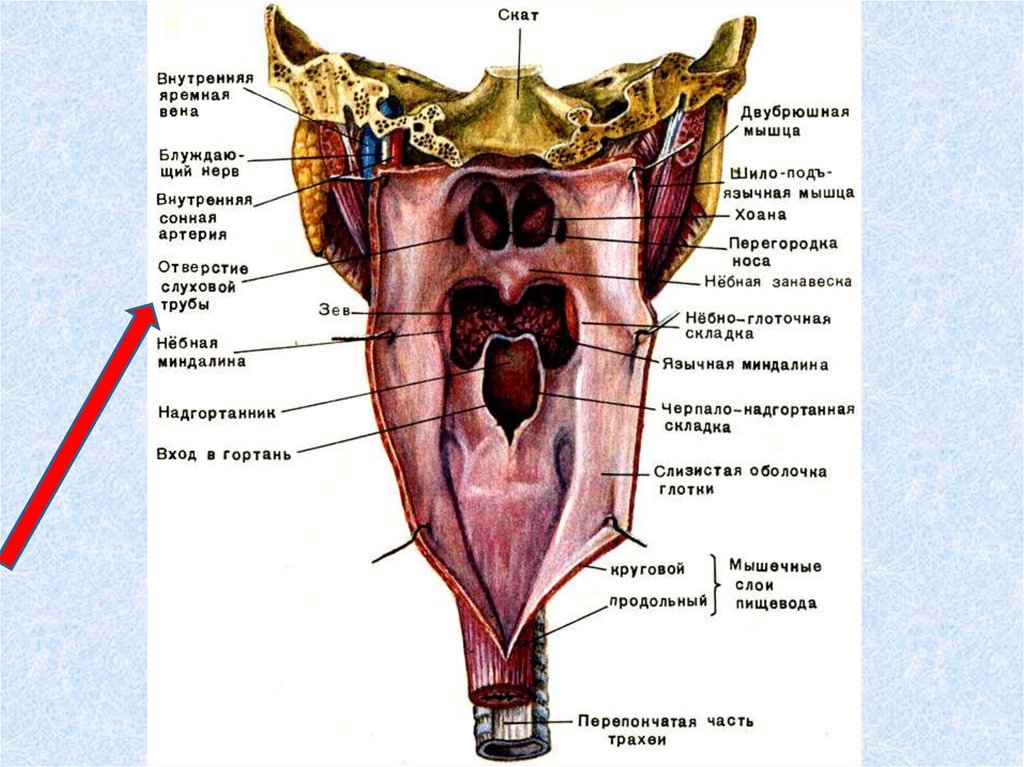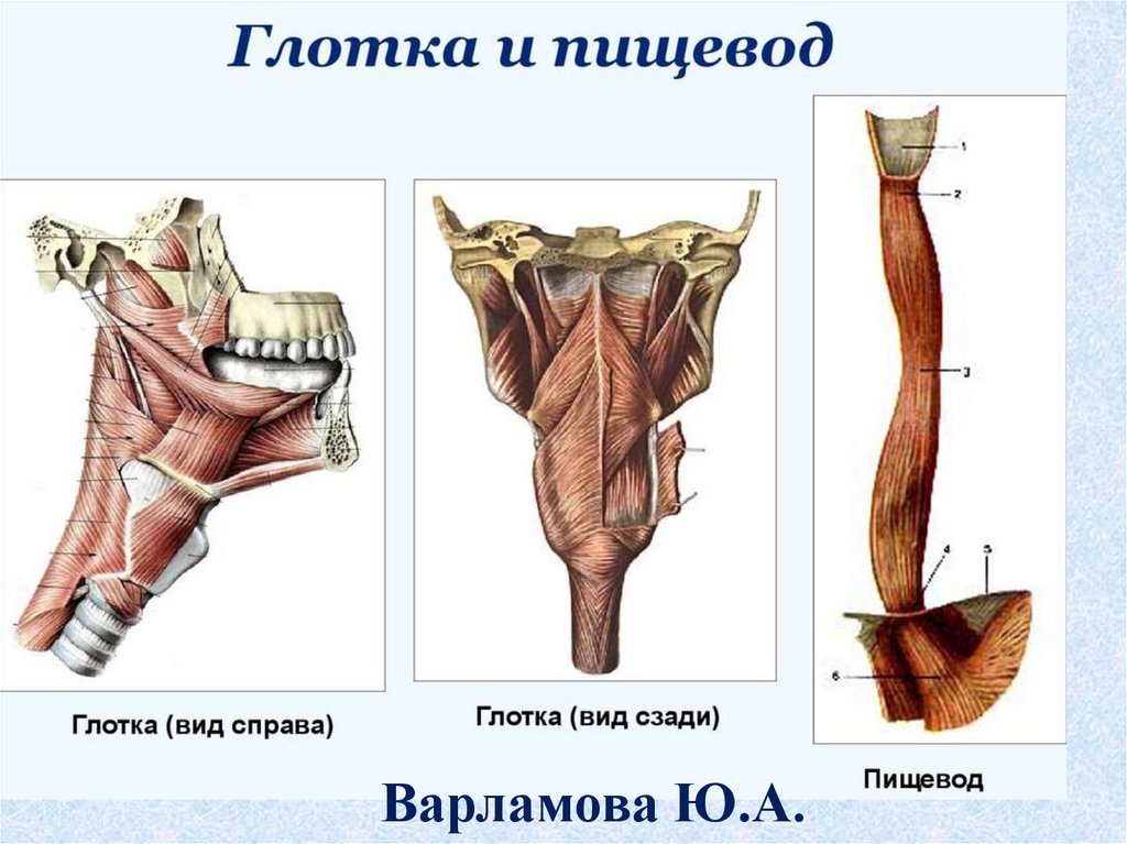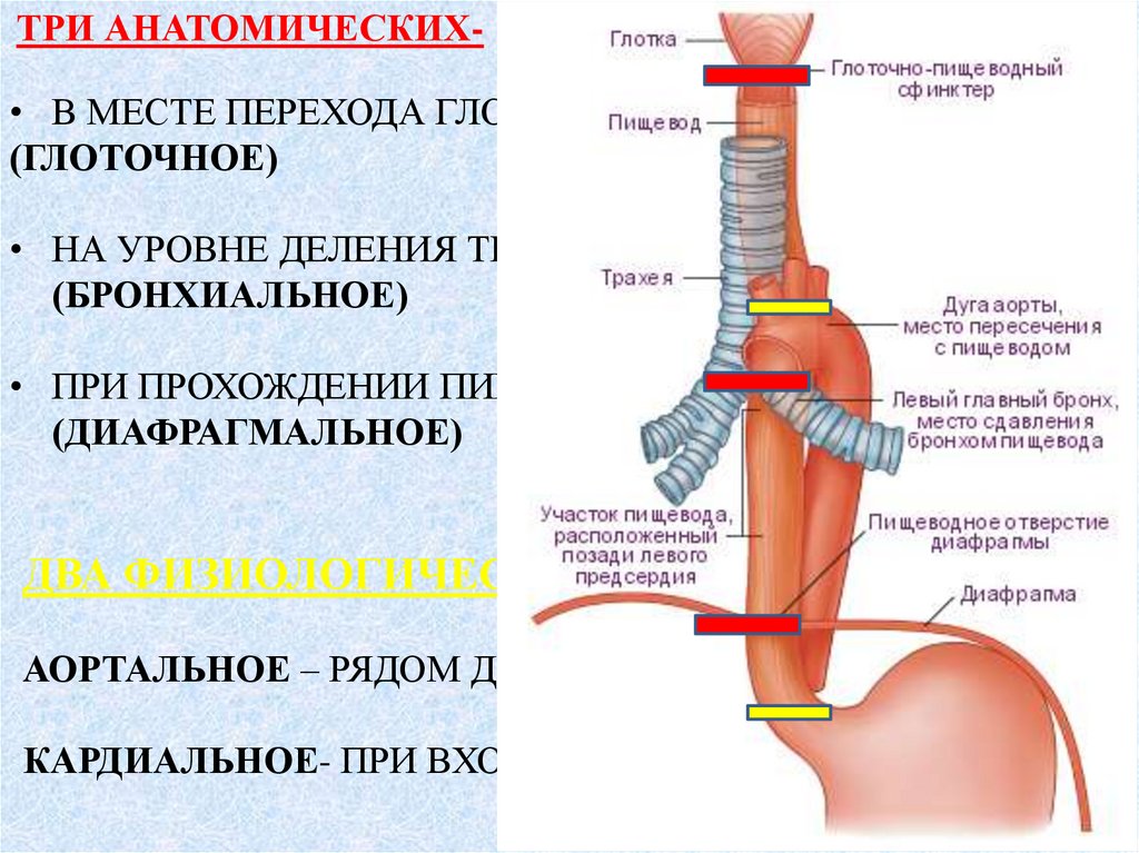 ТРИ АНАТОМИЧЕСКИХ• В МЕСТЕ ПЕРЕХОДА ГЛОТКИ В ПИЩЕВОД(ГЛОТОЧНОЕ)