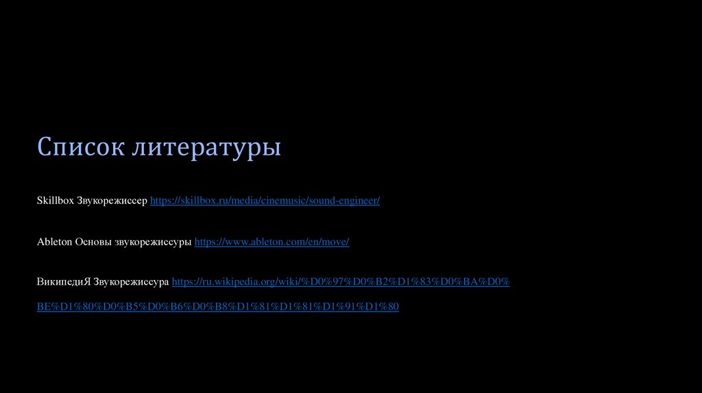 Список литературыSkillbox Звукорежиссер https://skillbox.ru/media/cinemusic/sound-engineer/