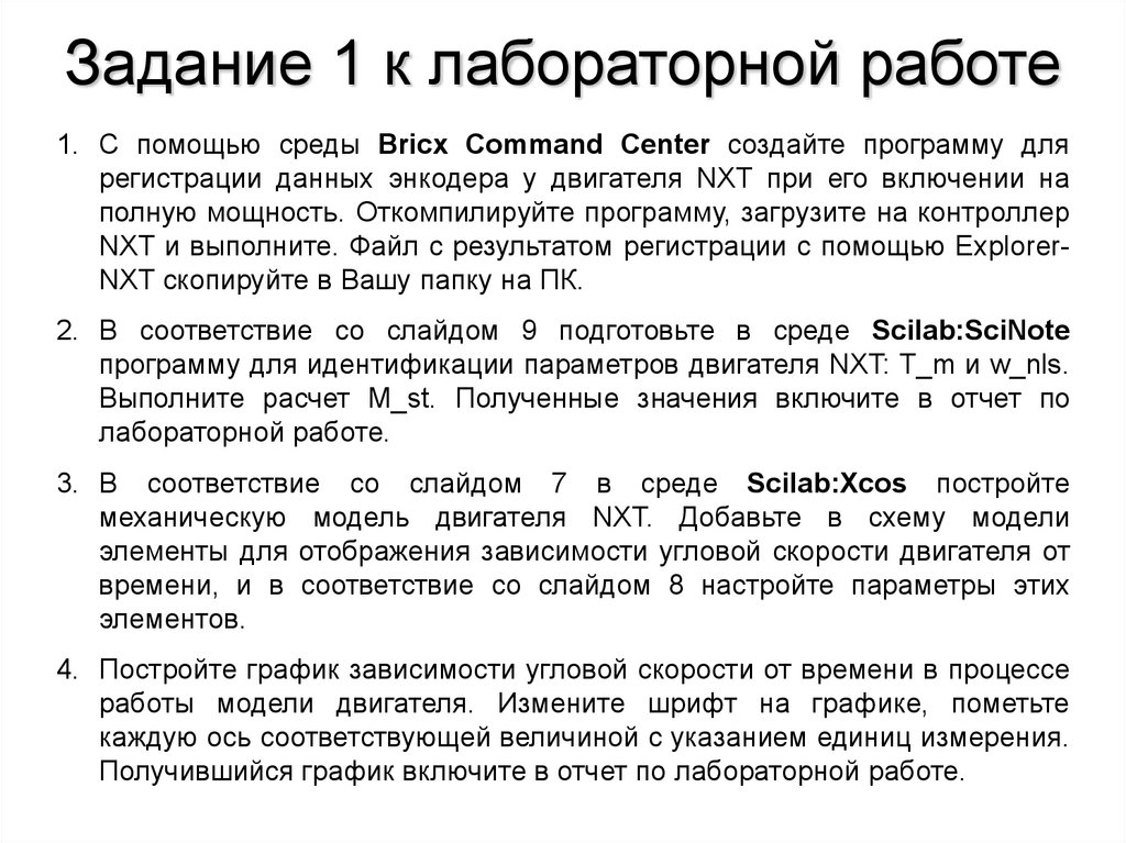 программу для идентификации параметров двигателя NXT: T_m и w_nls.