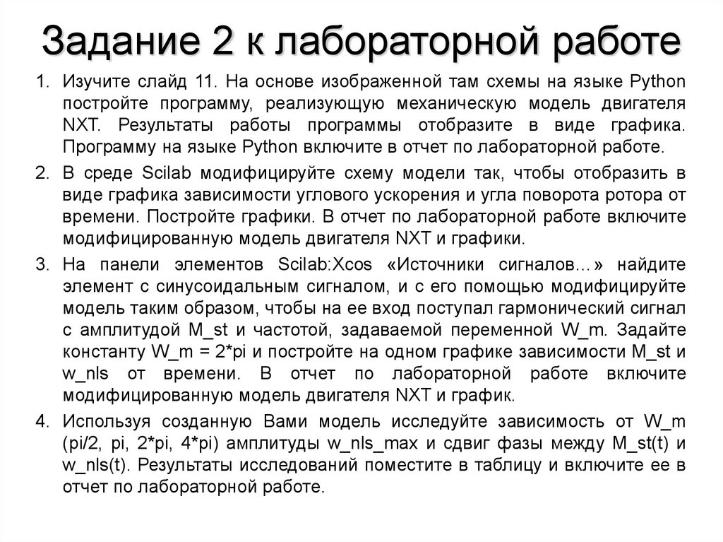 1. Изучите слайд 11. На основе изображенной там схемы на языке Pythonпостройте программу, реализующую механическую модель двигателя