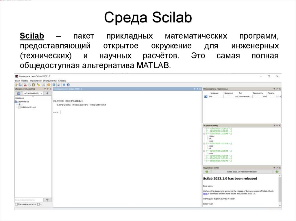 2. В соответствие со слайдом 9 подготовьте в среде Scilab:SciNote