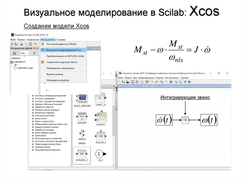 3. В соответствие со слайдом 7 в среде Scilab:Xcos постройте
