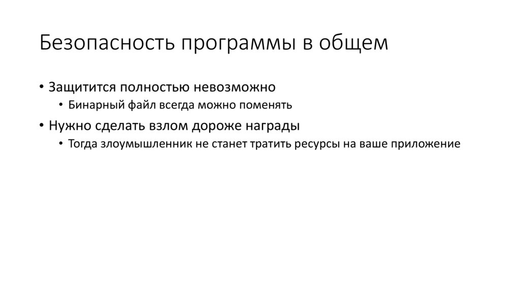 • Тогда злоумышленник не станет тратить ресурсы на ваше приложение