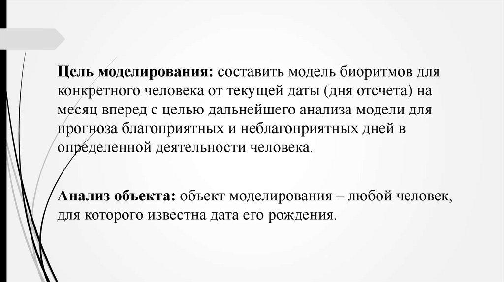 Цель моделирования: составить модель биоритмов дляконкретного человека от текущей даты (дня отсчета) на