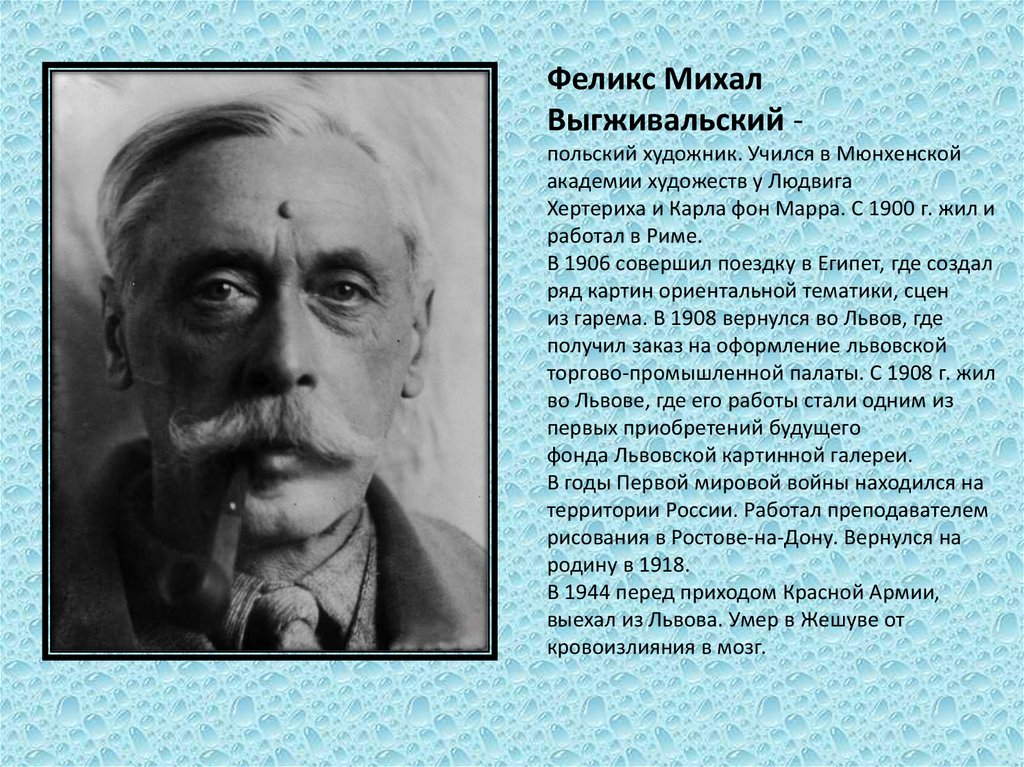 Феликс МихалВыгживальский польский художник. Учился в Мюнхенской