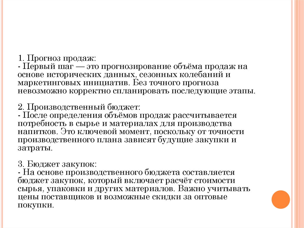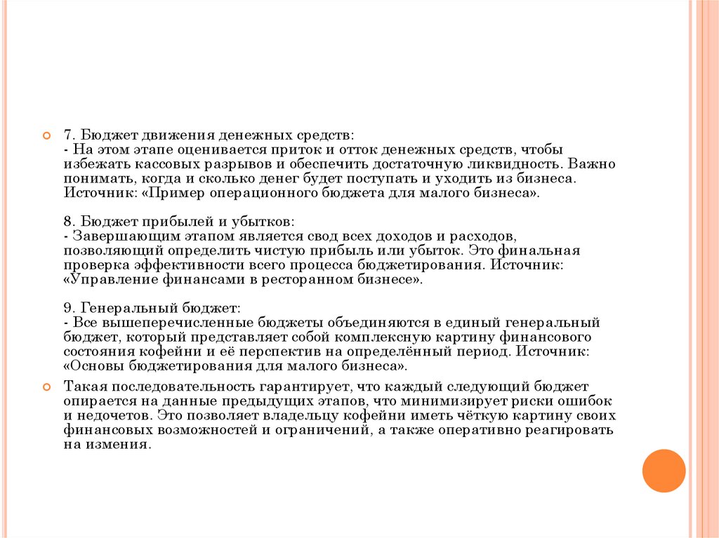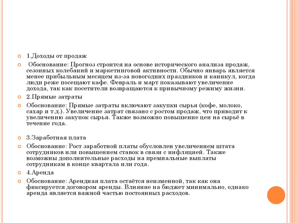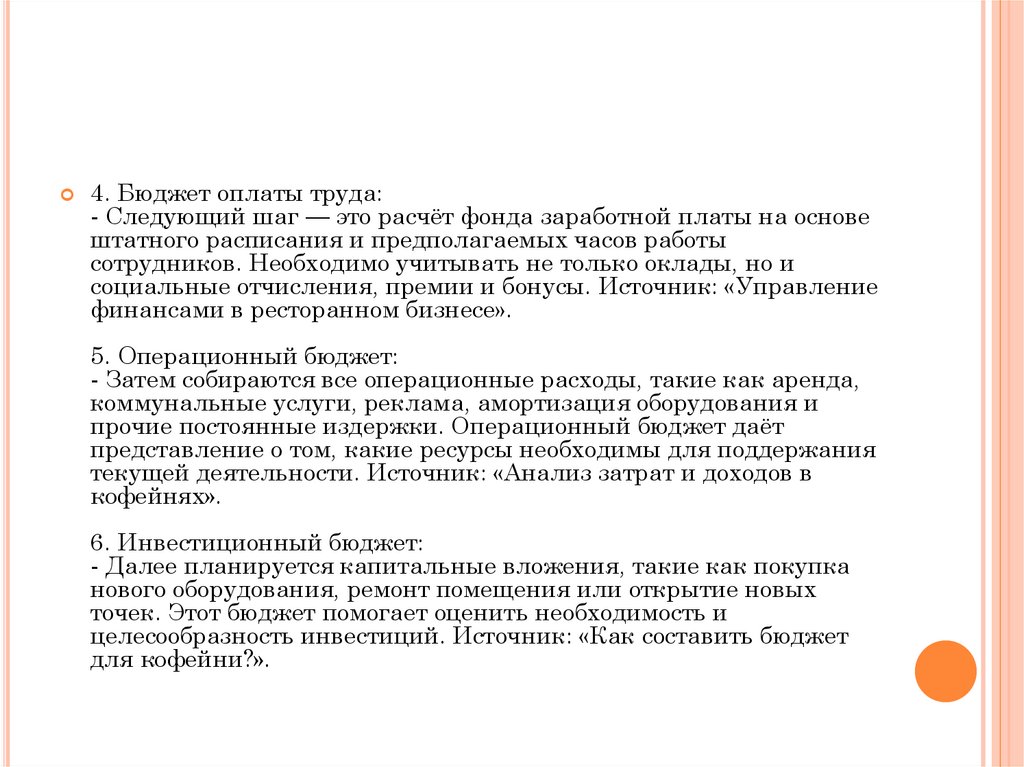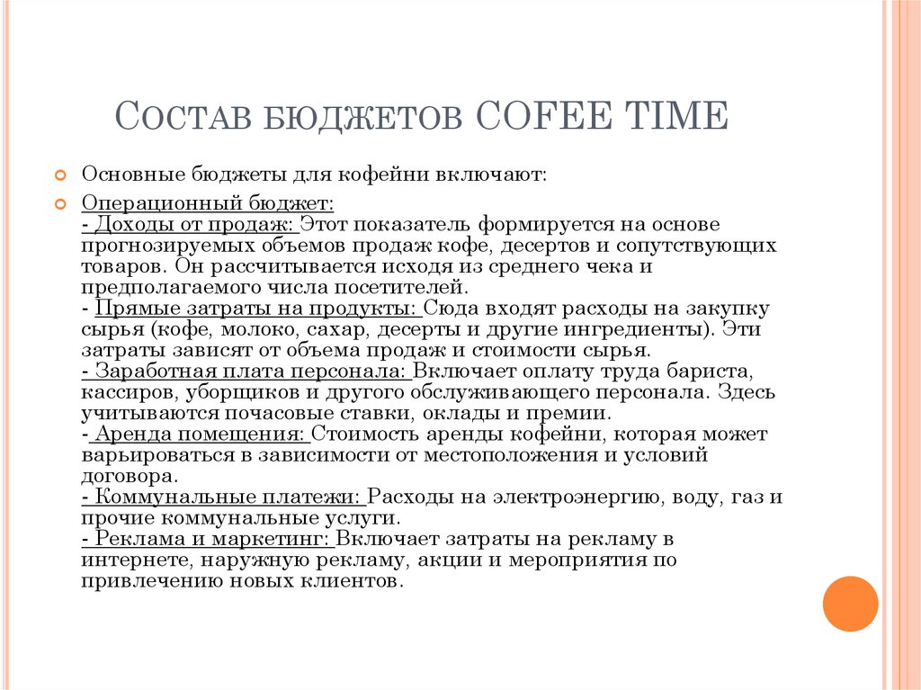 СОСТАВ БЮДЖЕТОВ COFEE TIMEОсновные бюджеты для кофейни включают:
