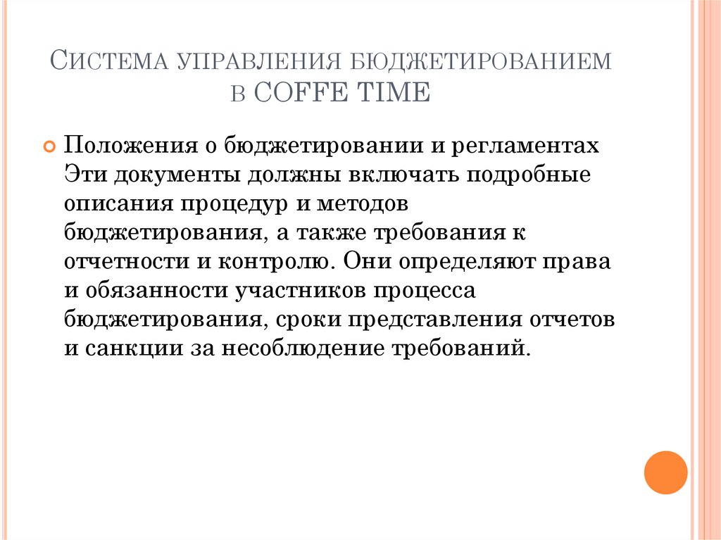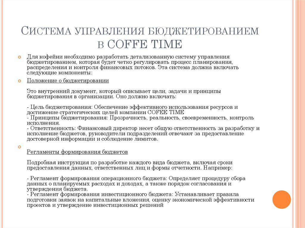 СИСТЕМА УПРАВЛЕНИЯ БЮДЖЕТИРОВАНИЕМВ COFFE TIME