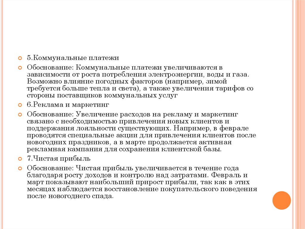 - Коммунальные платежи: Расходы на электроэнергию, воду, газ и