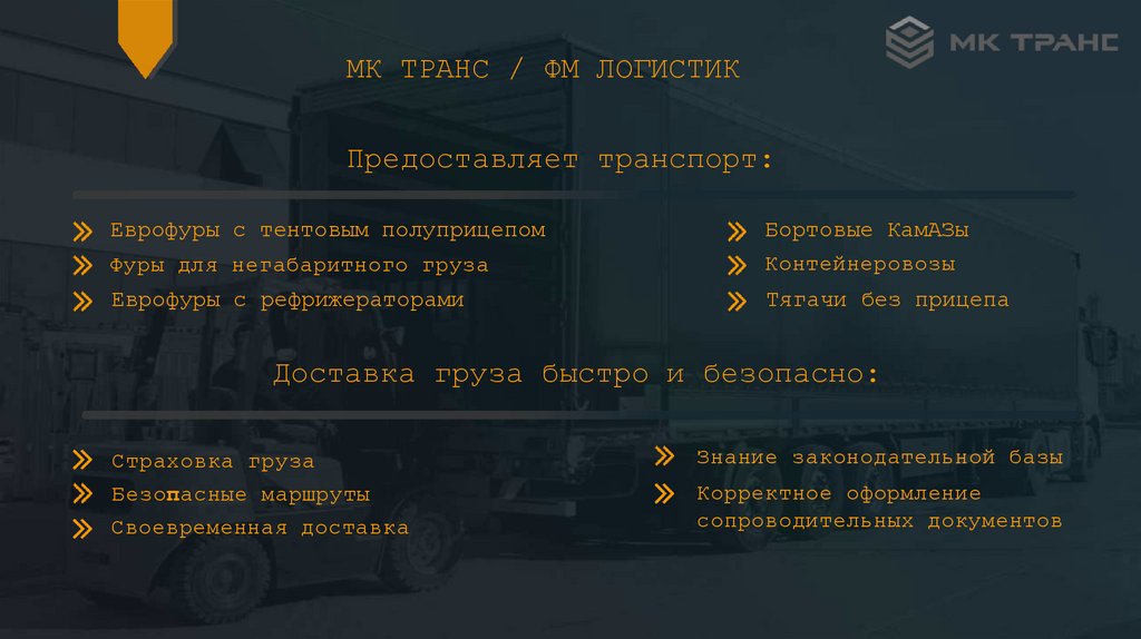 МК ТРАНС / ФМ ЛОГИСТИКПредоставляет транспорт: