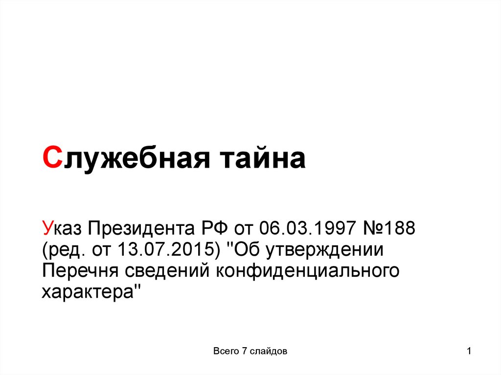 Служебная тайна Указ Президента РФ от 06.03.1997 №188 (ред. от 13.07.2015)