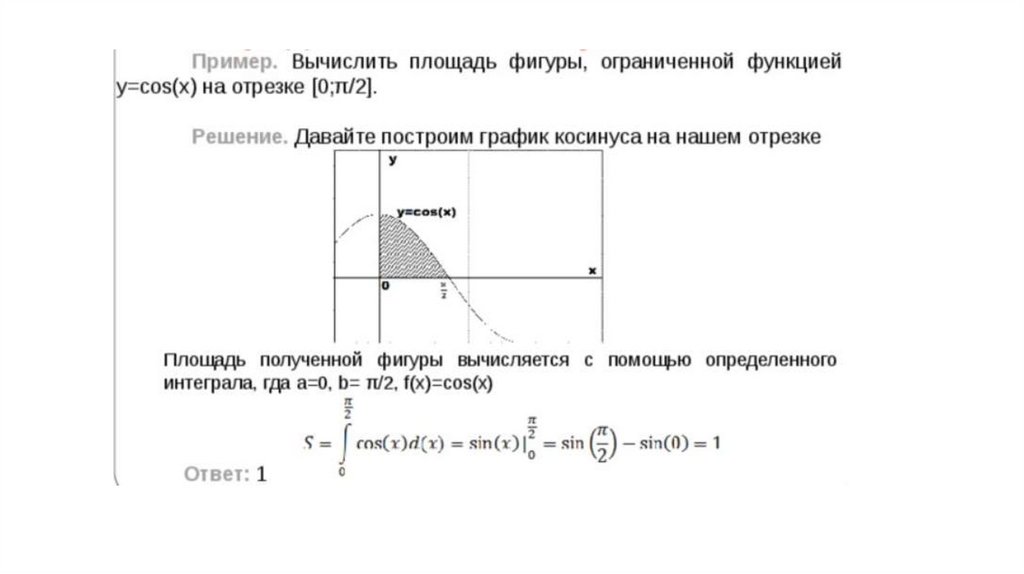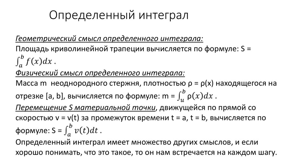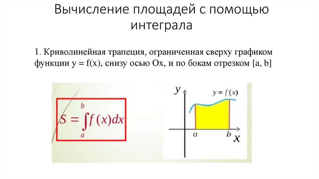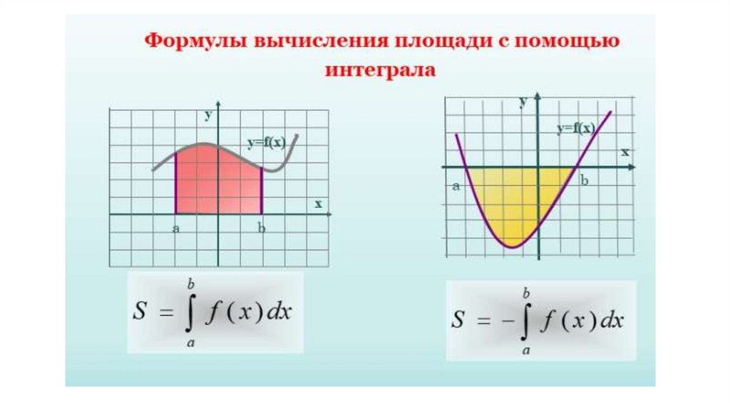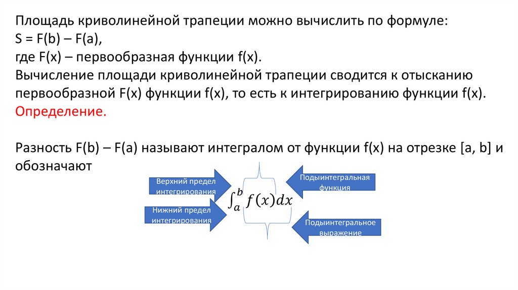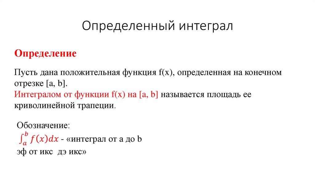 Интегралом от функции f(x) на [a, b] называется площадь ее