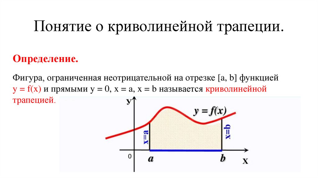 y = f(x) и прямыми y = 0, x = a, x = b называется криволинейной